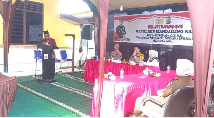 Dari pantauan di lokasi, kegiatan kunjungan kerja dan silaturrahmi Kapolres Mandailing Natal (Madina) berlangsung lancar dengan dihadiri berbagai kalangan baik dari jajaran Pemerintahan Kecamatan Natal, TNI, Kepala Desa, MUI, KUA dan tokoh masyarakat, tokoh agama, tokoh adat serta beberapa utusan perusahaan perkebunan dan juga pengurus koperasi di wilayah Natal. (R-Adnan).