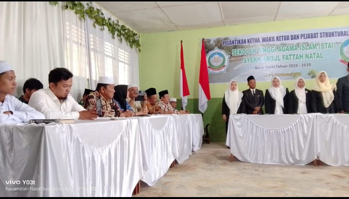 Madinapos.com, Natal – Pelantikan Ketua, Wakil Ketua dan Pejabat Struktural Sekolah Tinggi Agama Islam (STAI) Syekh Abdul Fattah Natal pada Kamis (12/2/2026) menjadi tonggak awal adanya fasilitas pendidikan setingkat perguruan tinggi di wilayah Pantai Barat Mandailing Natal.