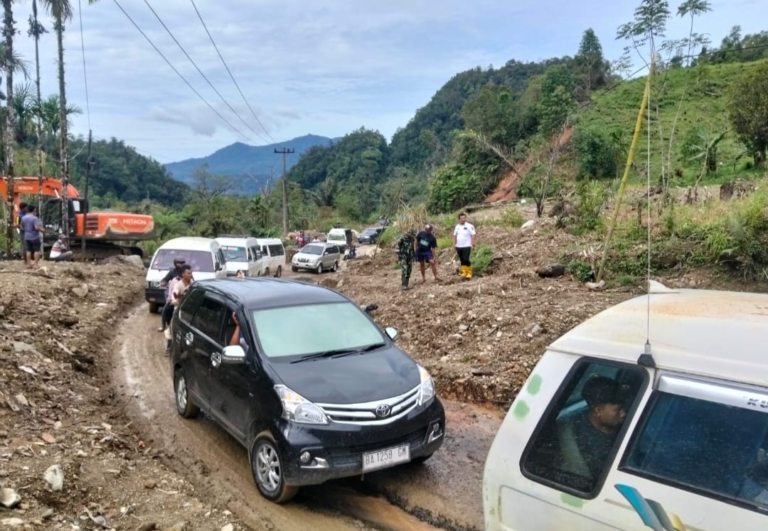 Melalui instruksi langsung dari Bupati Mandailing Natal (Madina) H Saipullah Nasution, Dinas Pekerjaan Umum dan Penataan Ruang (PUPR) mengerahkan alat berat untuk menyingkirkan material yang sempat melumpuhkan akses jalan penghubung Mandailing Godang ke wilayah Pantai Barat itu.
