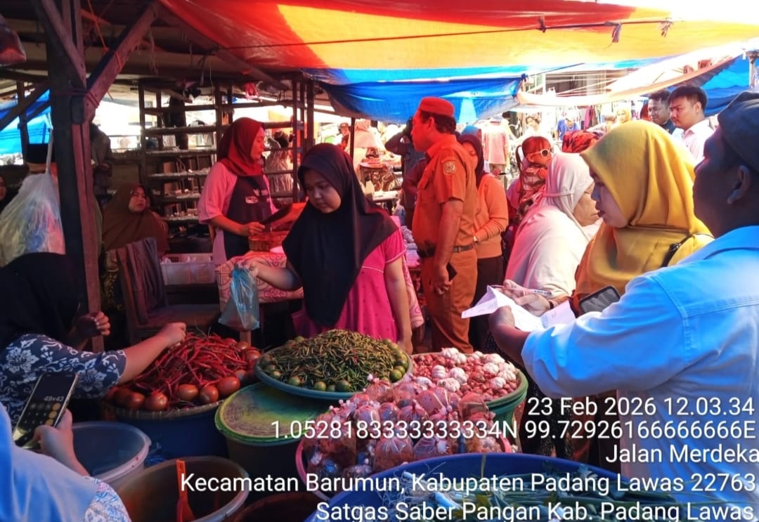 Madinapos.com, Padang Lawas – Satuan Reserse Kriminal Kepolisian Resor Padang Lawas (Satreskrim Polres Palas) bersama Satgas Saber Ketahanan Pangan (Ketapang) melaksanakan pengecekan harga Sembilan Bahan pokok (Sembako) sesuai Harga Eceran Tertinggi (HET) di Pasar Tradisional Sibuhuan, Kabupaten Palas pada Senin (23/02/2026) pagi.