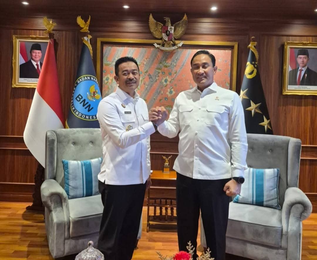 Rombongan Bupati Mandailing Natal diterima langsung oleh Kepala BNN RI, Komisaris Jenderal Polisi Dr. (H.C.) Suyudi Ario Seto, S.I.K., S.H., M.Si. Pertemuan ini difokuskan pada upaya membangun sinergi untuk mendukung rencana pembangunan jalan yang menghubungkan Mandailing Natal dengan Kabupaten Padang Lawas (Madina–Palas), serta pengembangan ekonomi alternatif di Kecamatan Panyabungan Timur.