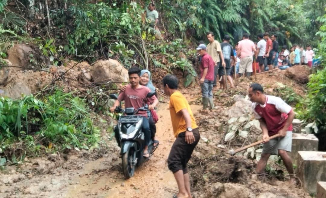 Akses Terputus Akibat Longsor, Forkopimcam Batang Natal Gerak Cepat Bersihkan Jalan Desa Ampung Julu